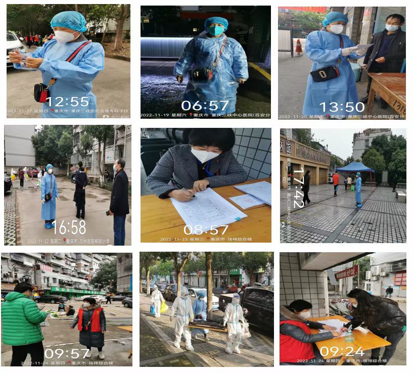 万州本次新冠疫情发生以来,11月中旬,支委成员郑代坤同志带领党员老师和“90”后青年教师共5名成员,前往万州区政府疫情联防联控指挥部、万州区卫健委,参与疫情流行病学特征分析,传播链梳理、风险评估,疫情趋势研判工作,提出防控策略与措施建议。谈及志愿行动的体会时,预防医学专业教师范明月谈到,我们既要能站上三尺讲台,又能真正开展实践指导,今后需要多“走出去”到行业一线去,更新知识,提升能力,作为一名党员教师,我会以更加饱满的精神状态,全力培养“医防融合”的复合型、应用型公共卫生人才。