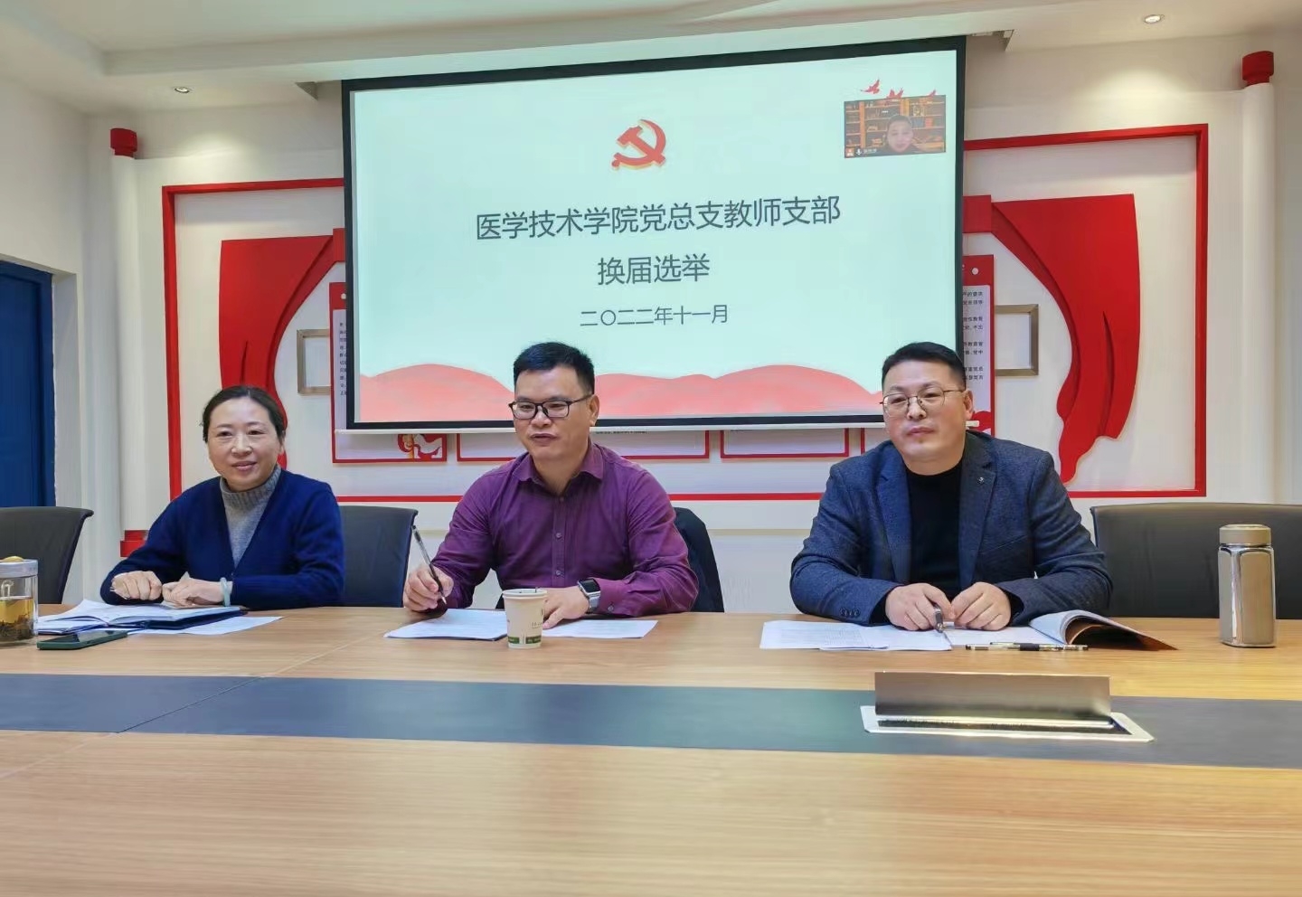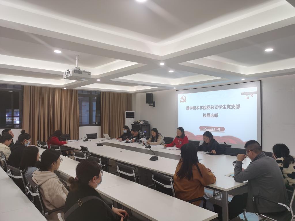 2022年11月23日,医学技术学院党总支教师支部、学生支部分别于B6-410、B6-415召开了支部大会,进行换届选举。会议由本届支部书记主持。学校党委委员、副校长张建忠列席教师支部,参加了会议。因疫情原因,部分教师及实习学生党员未能返校,会议采用了线上线下相结合的方式,两支部教职工党员28人、学生党员24人(含实习学生)均参会。