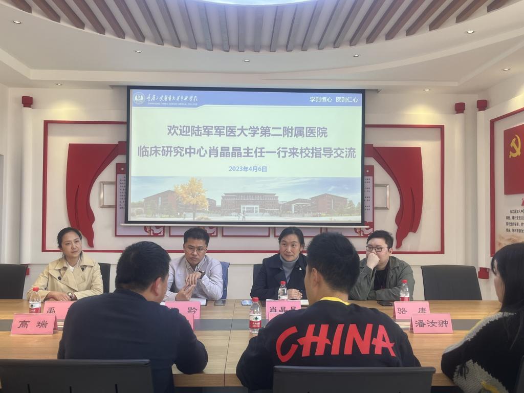 4月6日下午,陆军军医大学第二附属医院临床研究中心主任肖晶晶一行到医学技术学院商讨合作事宜,会议在B6-410会议室召开。医学影像技术、检验技术、生物技术专业骨干教师参会。会议由医学影像技术专业负责人张远理主持。