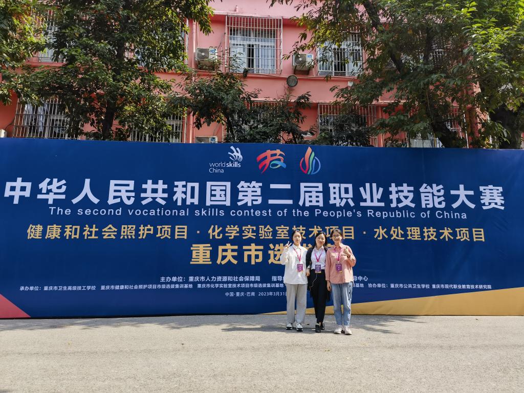 中华人民共和国第二届职业技能大赛健康和社会照护项目重庆市选拔赛于3月31日-4月3日在重庆市卫生高级技工学校举行。来自12所院校的20名选手参与角逐,最终选拔10名选手进入重庆市集训队,我校选手22级护理3班韩瑞琦、22级护理10班王思琪以优异的成绩顺利晋级。