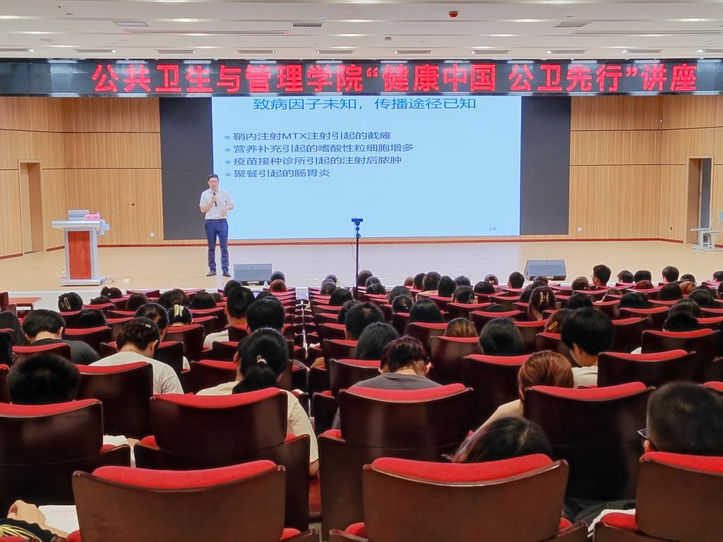 为进一步深化学生对专业的认知,增强专业学习自信心,培养优秀公卫小能手,4月19日下午,公共卫生与管理学院2023年“健康中国 公卫先行”专题讲座,在第四教学楼学术报告厅举办。重庆市疾控中心主任龙江教授担任主讲,学院预防医学专业、公共卫生管理专业师生合计300余人聆听讲座。学院副院长郑代坤主持讲座。