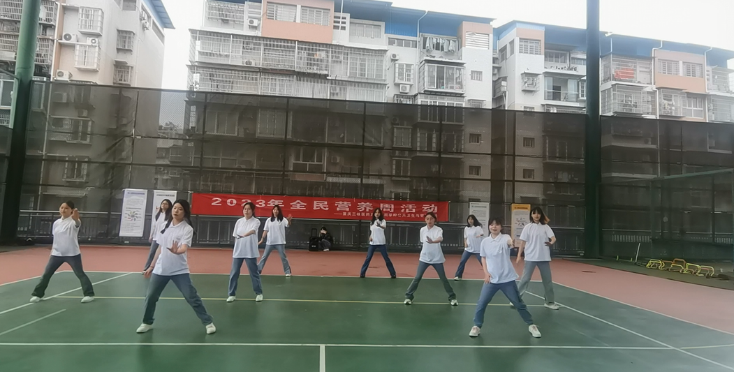 本次科普宣教,近百名社区群众、公卫学院20余名师生以及程家居委会相关工作人员参加其中。活动以预防疾病为导向,倡导合理膳食,增强全民营养意识,活动现场主要包括营养健康操表演、营养健康游园知识答疑、医养指南宣教与营养健康咨询等宣教环节。