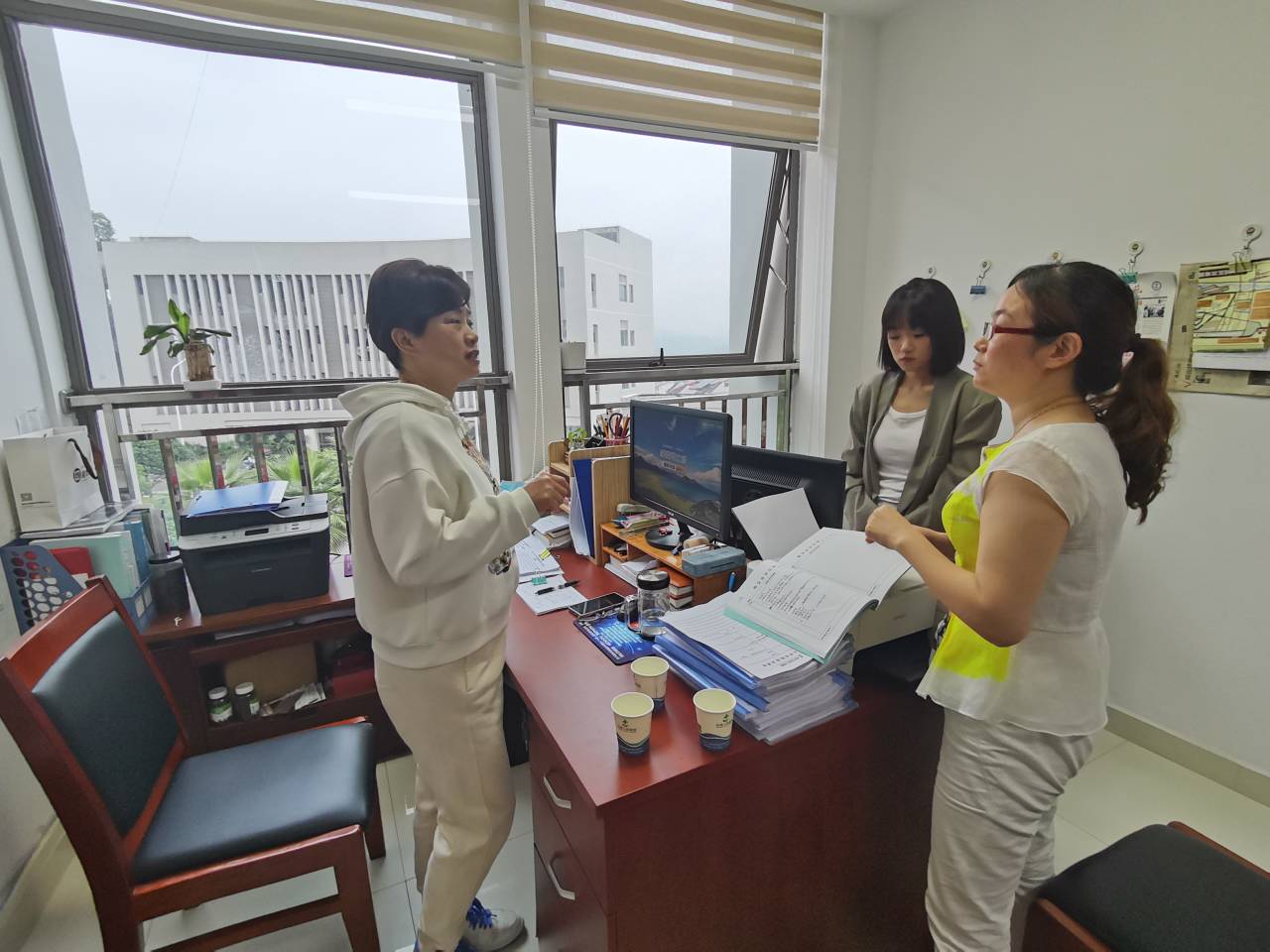 陈少云一行深入学生宿舍走访、随堂听课,开展师生座谈。在公寓走访中,工作组了解到忠县人民医院各项生活设施完善,公寓楼、教学区域和食堂相邻设置为学生生活提供便捷;在随堂听课中,陈少云与任课教师互相交流了上课的经验,详细了解学生学风建设情况;在师生座谈中,工作组认真为学生们答疑解惑,现场交谈氛围融洽,深深感受到学生对忠县人民医院的喜爱,对于忠县人民医院人性化的管理模式、寓教于乐的教学方法给予了高度肯定。