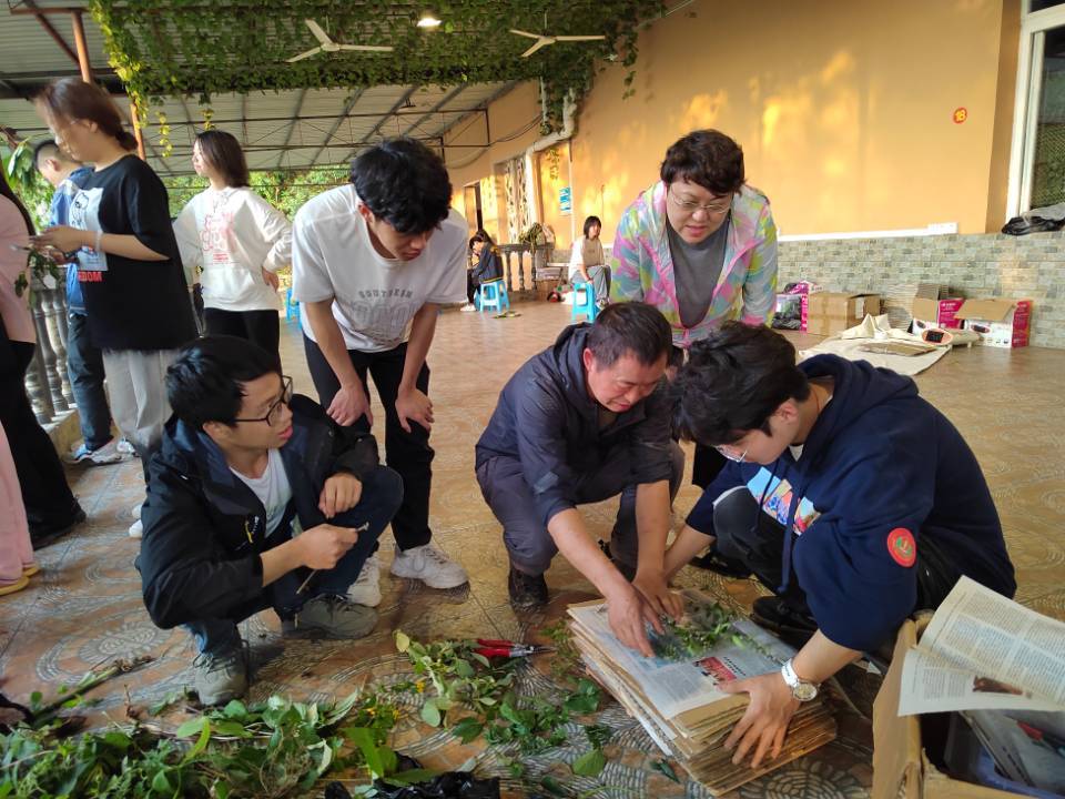 见习中,指导老师白天带领学生沿山路行走,熟悉当地环境,对沿途药材进行现场讲解,通过眼观、手摸、鼻闻、口尝、水试等鉴定方法引导学生们进行药用植物识别;晚上回到驻地后,教授学生如何压制中药材标本并烘干。野外见习这几天,大家见到了日常不曾轻易见识过的风景,几乎每一株植株都是一味中药,常春藤、紫花地丁、菝葜……漫山遍野,从采集、鉴别、讲解,从生长环境、所具药效、采收季节,在老师们耐心细致地指引下,学生们尽情地挖掘着这条药用植物“宝库”之路。这趟户外实践课真正走进了每个人的心里,大家深入了解了中药的采集、鉴别、处理与贮存方法,在增强实践操作能力的同时,也提高了中药标本的认知、理解和分析能力。