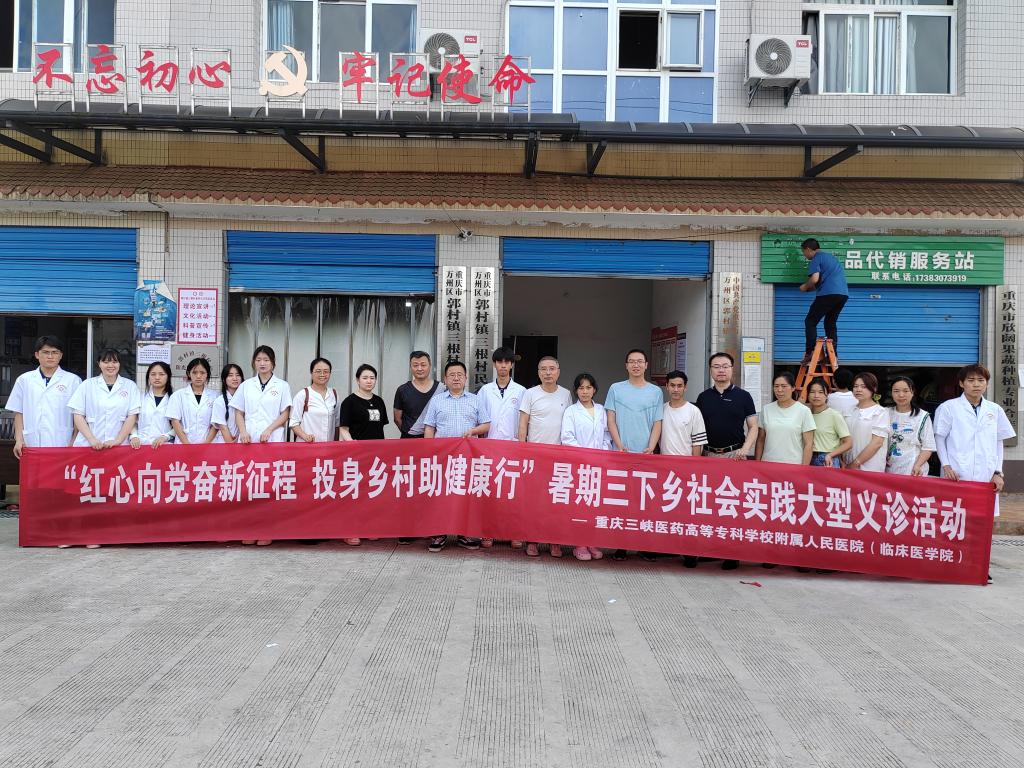 7月7日上午,附属人民医院(临床医学院)副院长朱文胜带领医院10名医护工作者和临床医学院“萤火之峡”乡村振兴促进团22名志愿者,分别在万州区郭村镇和三根村开展了两场暑期“三下乡”社会实践大型义诊活动,惠及当地居民500余人。