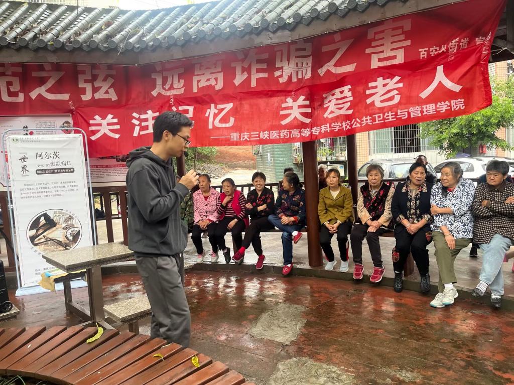 活动现场,教师夏万元围绕“关注记忆,关爱老人”主题,以疾病预防为导向,从含义、发病原因、发病三大阶段、发病十大信号、常见三大误区和护理要点等讲解阿尔兹海默病,学生志愿者为每一位到场的老人分发黄手环。随后,夏万元现场演示如何使用黄手环,与居民进行亲切竞答互动,孜孜不倦地回答每一个居民的健康疑问,通过健康咨询带动周围居民主动了解疾病,帮助增强健康意识。最后,学生志愿者为每一位到场的老人分发礼品,祝愿他们晚年生活平安健康。