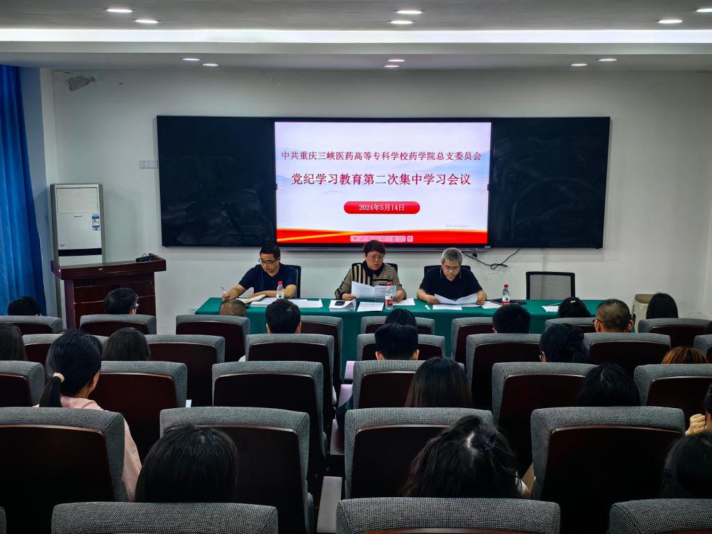 5月14日下午,药学院党总支在第二实训楼511教室开展党纪学习教育集中学习(第二次)暨警示教育专题会,学院全体党员参加,会议由药学院党总支书记董江峡主持。