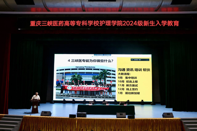 最后,左凤林对所有新生同学提出三点希望:一是珍惜——做有理想有担当的新时代青年。希望各位同学要以“健康所系,性命相托”为使命,立志成为一名优秀的护理工作者,为人民的健康事业贡献自己的力量。二是成长———做全面发展的三峡医专学子。大学是人生中成长最快的阶段之一,各位同学不仅要在学业上还要在综合素质上不断提升自己,培养自己的创新思维。三是回馈——做有仁心仁术的人民健康守门人。希望各位同学常怀感恩之心,以回馈社会为己任,用精湛的技术和过硬的技能做人民健康的忠诚守护者。