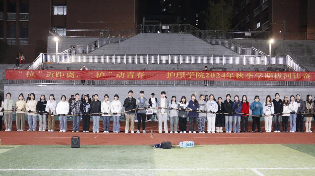 为落实立德树人根本任务,坚持五育并举,提升护理学院学子凝聚力,锻炼强健体魄。学院于2024年11月10日晚在新区运动场举办2024年护理学院拔河比赛。