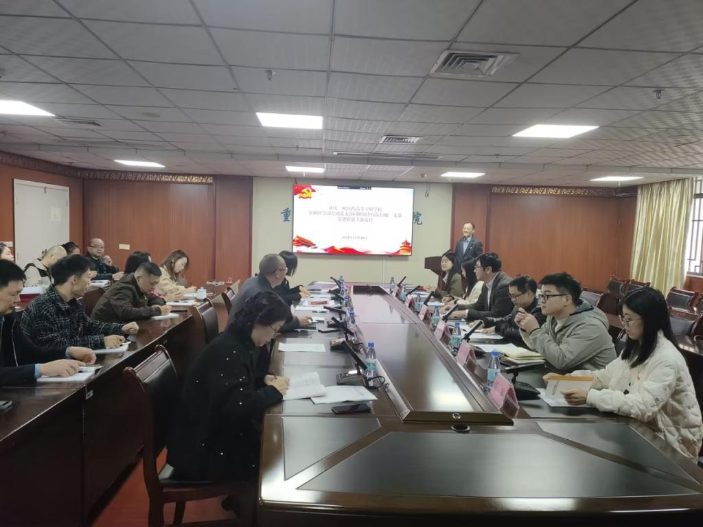 此次联建活动主要以座谈会的形式开展,出席会议的有基础医学部直属党支部书记李国利、4名党员骨干和附属中医院党委书记张德兵、行政一支部全体党员。会议由行政一支部书记陈灿主持。会上,首先由李国利结合二十届三中全会精神对支部的概括和建设方向进行了介绍,支部自2018年成立,至今走过的6年,取得了市级先进组织、市级双带头人工作室和国家级样板支部等亮眼成绩。