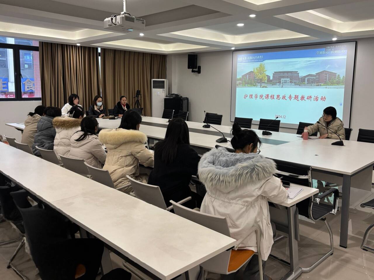 为进一步提高学院课程思政的教学质量和成效,12月26日下午,护理学院在B6-315会议室开展“课程思政”专题集体教研活动。本次活动由学院副院长邓菲菲主持,老年照护教研室主讲,其他教研室教师观摩学习。