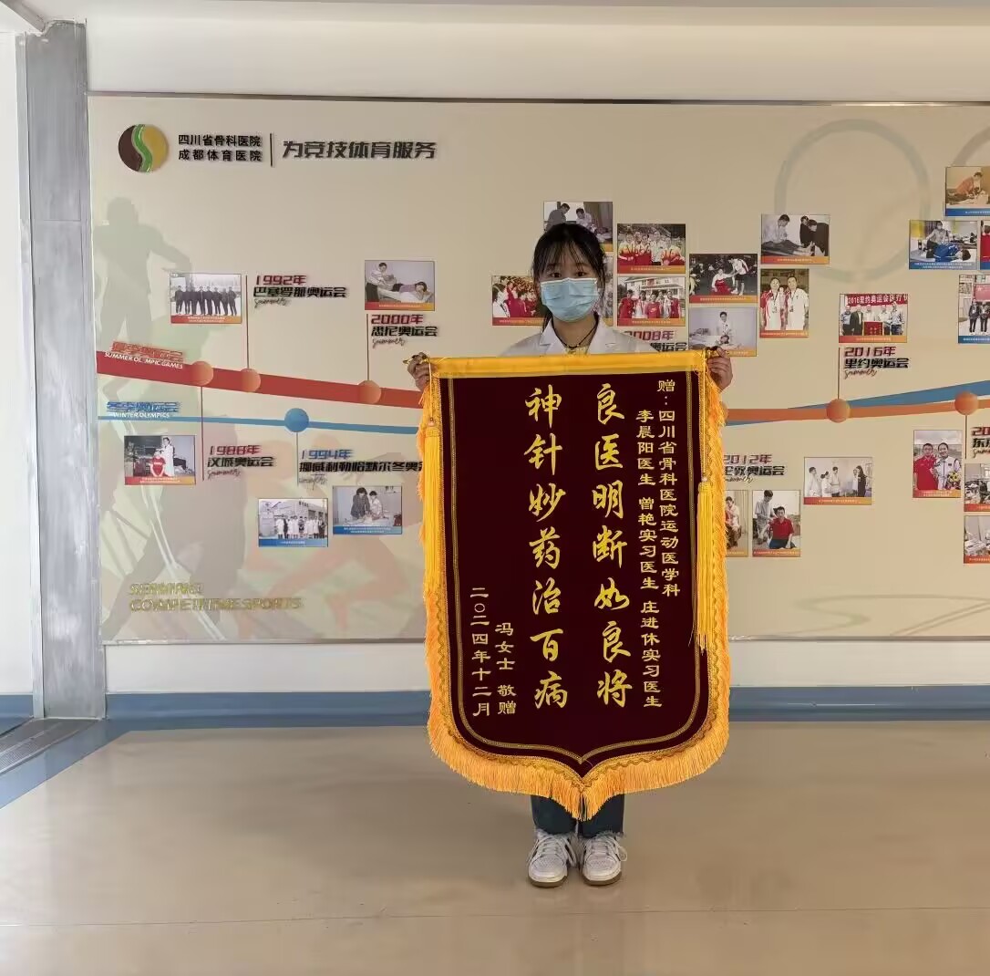 2024年12月,在四川省骨科医院进行实习的2022级康复治疗技术3班的曾艳同学收到了来自一名患者冯女士赠送的锦旗,衷心感谢曾艳同学在冯女士住院26天康复治疗过程中的帮助。