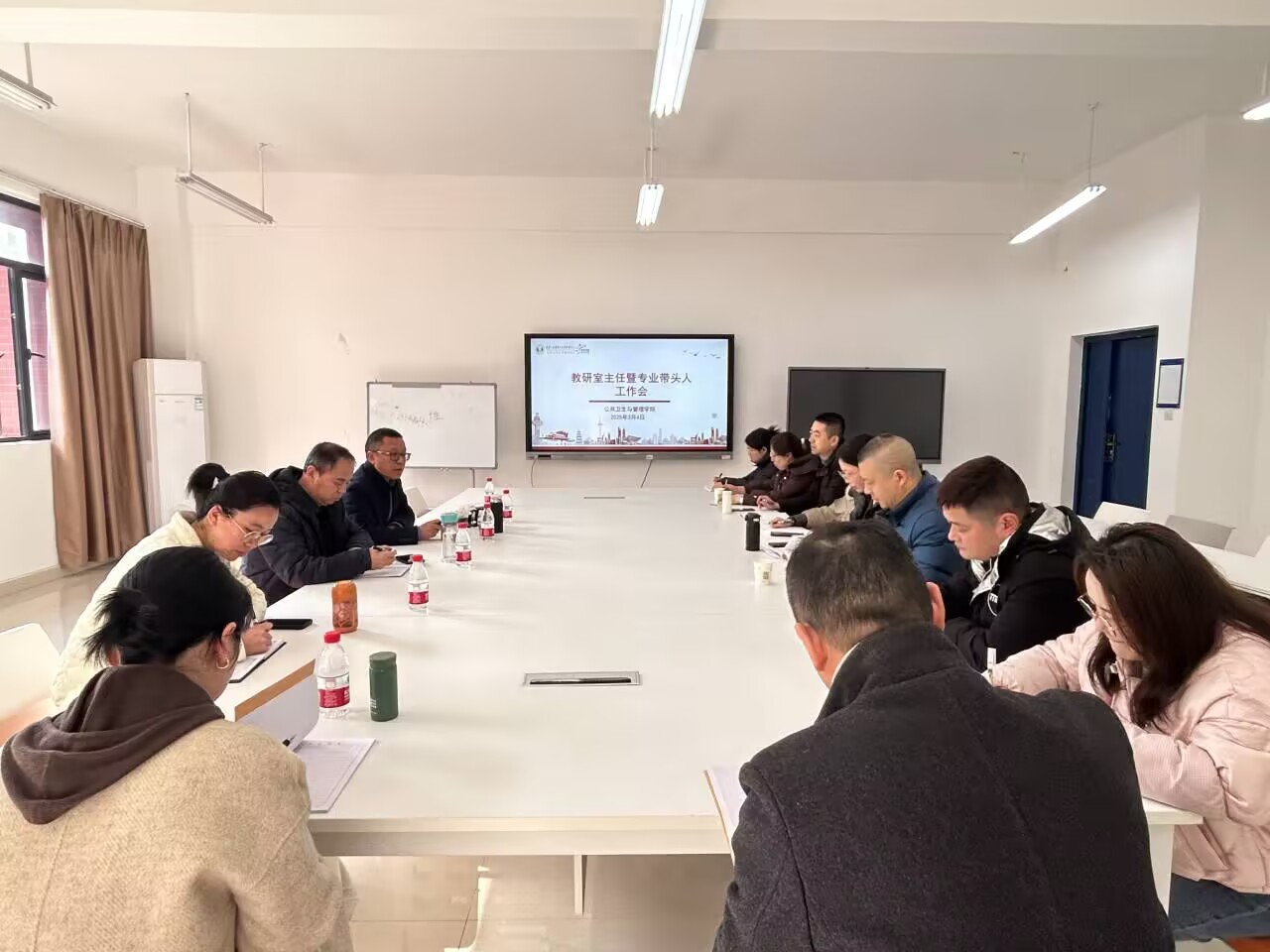 为落实《教育部办公厅关于加快推进现代职业教育体系建设改革重点任务的通知》精神,推动高校“双带头人”教师党支部书记“强国行”专项行动,深化职业教育理念,公卫学院于2025年3月4日下午在B6-514会议室召开专业建设与发展提升专题研讨会。学院直属党支部书记、副院长郑代坤、专职副书记李生以及各教研室主任、专业负责人共计13人参会。会议由郑代坤主持。