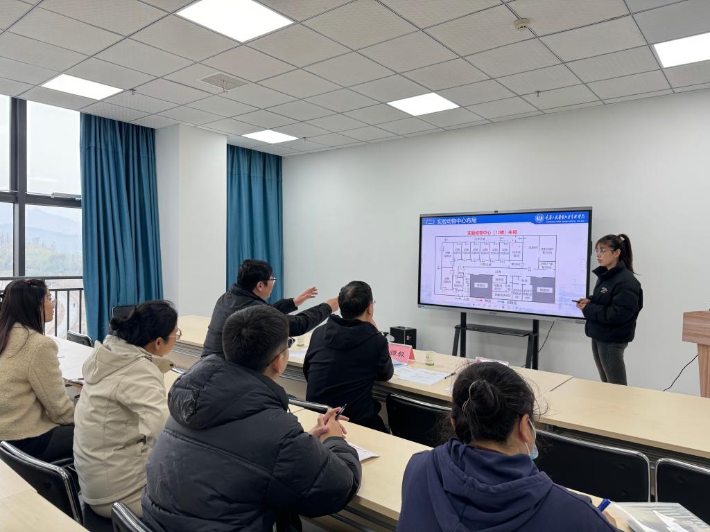 我校实验动物中心管理老师李莹莹详细汇报了中心的运行管理情况。汇报内容涵盖动物中心的日常管理、设施维护、动物福利保障、伦理审查以及科研支持等多个方面。谭主任认真听取了汇报并走进实验室现场调研,对我校实验动物中心的建设和运行管理工作给予了充分肯定。他结合重医经验,对我校实验动物中心管理与运行提出了宝贵建议。这些建议后续为中心规范化管理和未来快速发展提供了重要思路。