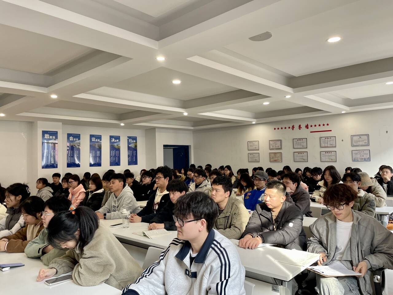 师生共话成长,锚定未来航向 座谈会第二阶段,21级、22级80余名学生参加了学生见面会。汪明松书记和梁姗副主任分别就21级学生考研复试、就业指导以及22级学生学业规划、考研就业准备等方面进行了详细介绍和指导。汪书记鼓励同学们要坚定理想信念,明确目标方向,充分利用两校合作提供的优质资源,不断提升自身综合素质,为未来发展奠定坚实基础。现场学生踊跃提问,就专业深造、职业规划等困惑寻求指导,教师团队结合行业趋势与个体特质逐一给出定制化建议。