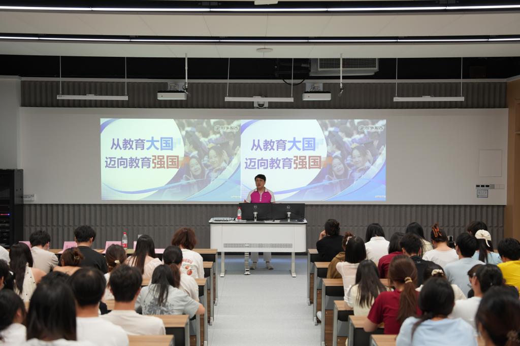 2025年5月15日晚,药学院党总支书记董江峡在二教学楼201教室,为80余名团学干部及班级主要干部开展 “教育强国建设”形势与政策专题讲座,以政策解读与药学院实际结合的视角,为青年学子点亮筑梦征程。