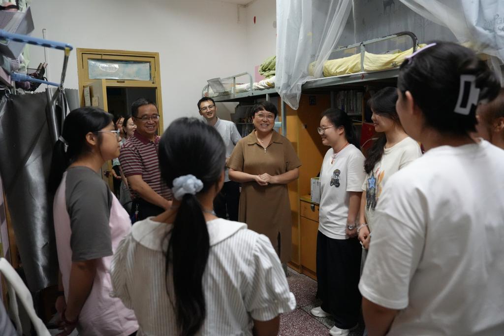 随后,他们还与走访的其他同学进行了座谈交流,详细询问了大家入校后的适应情况,从饮食起居到学习节奏,全面了解同学们在校园生活中遇到的困难与需求。董江峡书记和蔡兴东副院长关切地询问了大家的学习进展,引导同学们分享对所学专业的认知与理解,并鼓励大家结合自身兴趣与职业规划,明确大学阶段的目标与方向,为未来的专业学习与发展打下坚实基础。同时,他们也叮嘱同学们要养成良好的生活习惯,培养多元的兴趣爱好,踊跃参加各类校园活动,不断提高自身的综合素质和专业技能。此外,还特别强调了校园安全意识,提醒大家要自觉遵守学校的各项规章制度,确保度过一个安全、愉快的双节。