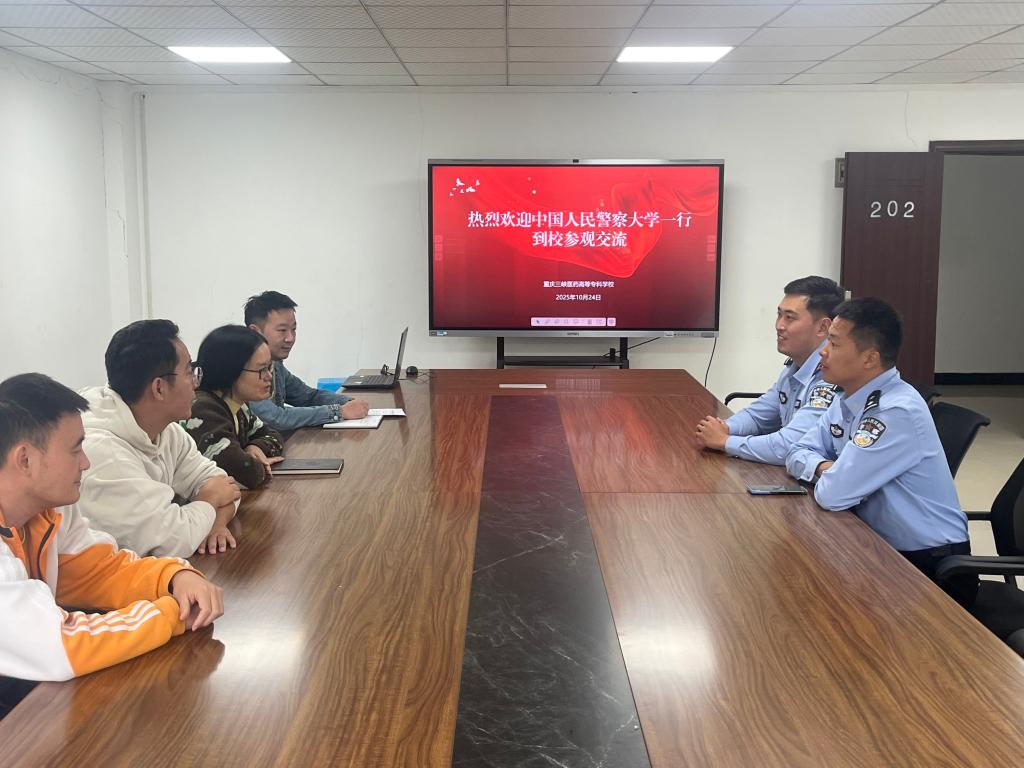 10月24日,中国人民警察大学警务指挥学院夏秋阳、吴金豹老师一行到学校调研体育教学、竞赛训练等相关事宜,在体育馆202会议室进行了座谈交流。公共基础部负责人李红丹及相关教师参加了座谈会。