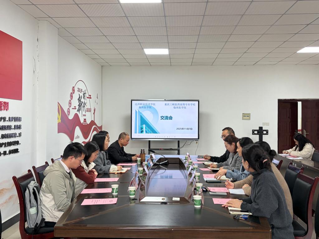 为学习先进经验,提升专业教育教学水平,推动专业建设与发展,2025年11月7日,达州职业技术学院临床医学院副院长刘梅一行6人来临床医学院开展交流座谈。院长张冬梅、专职副书记闫丽丽及相关专任教师参加会议,会议由张冬梅主持。