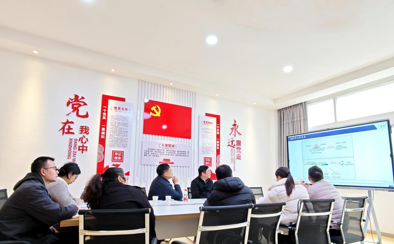 会上,王锋、张玉坤、刘勇成、龙云、卞存浩、张时恒、郑小芳和潘连红等博士围绕肿瘤机制与治疗、代谢疾病关联研究、核酸技术应用等重点方向,依次汇报了年度科研进展,部分博士展示了已发表论文成果、实验资源库建设进展及关键技术突破等内容。杨教授认真听取每项汇报,并围绕实验设计优化、机制深度挖掘及临床转化路径等关键环节,逐一提出具有前瞻性和实操性的指导意见,为各研究方向提供了清晰的提升路径。李国利主任在总结中肯定了各团队在肿瘤耐药、神经科学和天然药物开发等方向取得的阶段性成果,强调要进一步强化跨研究方向协作与资源共享,切实提升部门整体科研效能。