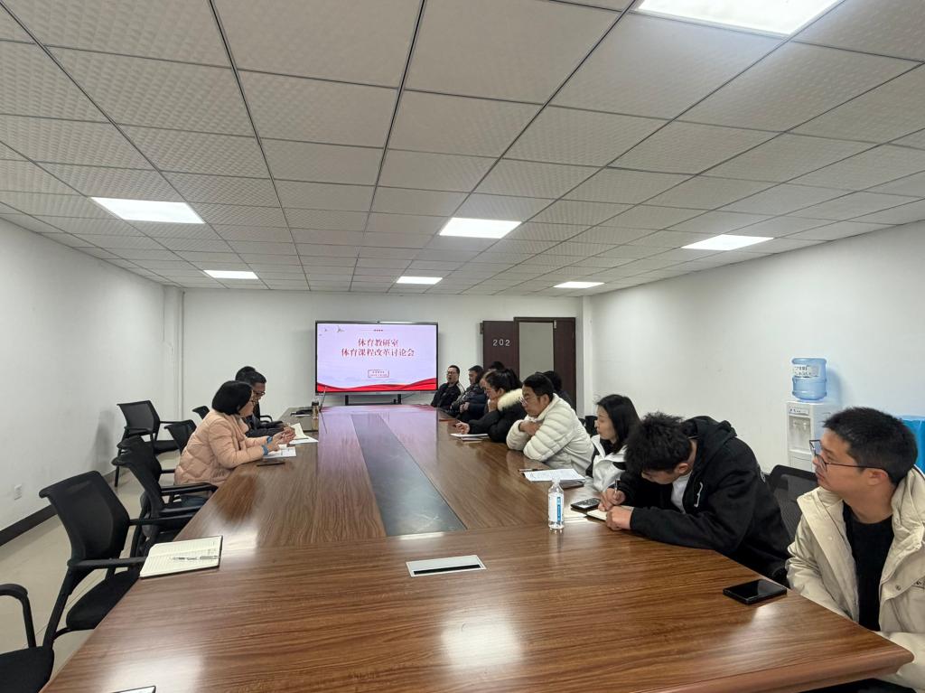 党的二十届四中全会对健康中国建设作出部署,为新时代高校体育工作锚定方向、明晰路径。重庆市教委召开全市大学生体质健康提升现场推进会,对高校体育工作再部署、再强化、再落实。为全面贯彻党中央、市委决策部署,推动各项要求落地见效,12月18日上午,体育教研室全体教师在体育馆202会议室召开体育课程改革专题讨论会,围绕深化体育课程改革、系统提升学生体质健康水平开展深度研讨,会议由公共基础部直属党支部书记李红丹主持。
