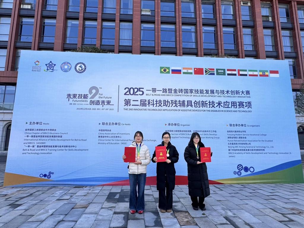 12月26日至28日,2025一带一路暨金砖国家技能发展与技术创新大赛第二届科技助残辅具创新技术应用赛项全国总决赛在湖南岳阳举行。来自全国的40支队伍、90余个参赛组同台交流。我校医学技术学院眼视光技术专业学生团队在此次比赛中获得二等奖1项、三等奖2项,学校获评优秀组织奖。