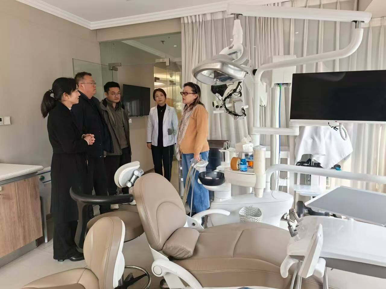 为深化校企精准合作,拓宽2026届口腔医学专业毕业生高质量就业渠道,精准匹配行业优质人才需求,1月16日下午,学院专职副书记闫丽丽、学生科实习科长马跃鹏、专任教师姜浩丰和就业干事吴丹丹一行四人赴重庆协尔口腔医院,开展实习就业一体化合作专项考察调研。